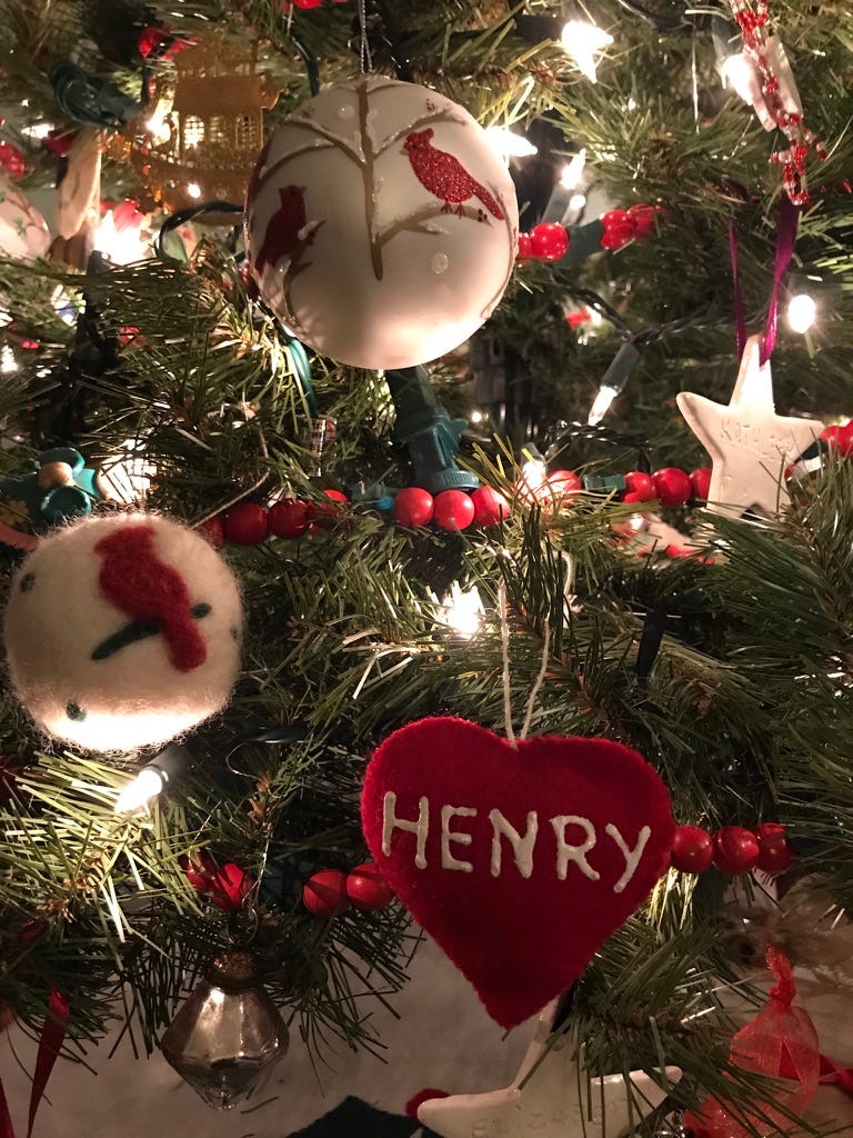 On the anniversary of Henry’s death, I stood on that same rock mid-stream, where that woman I almost don’t recognize beamed with expectation. I stood there, bearing the weight of all she didn’t know and couldn’t even conceive, breathing deep the smell of the woods. I can’t see the future with her unbridled enthusiasm, but I can still see these woods, still see the water flowing under the ice and the birch bark curling back. I can still notice the deep two pronged footprints of the deer and the pine branches fallen to the ground. I can still hold my head back and gaze up in wonder as snow, light as fairy dust, swirls from the leaden skies.